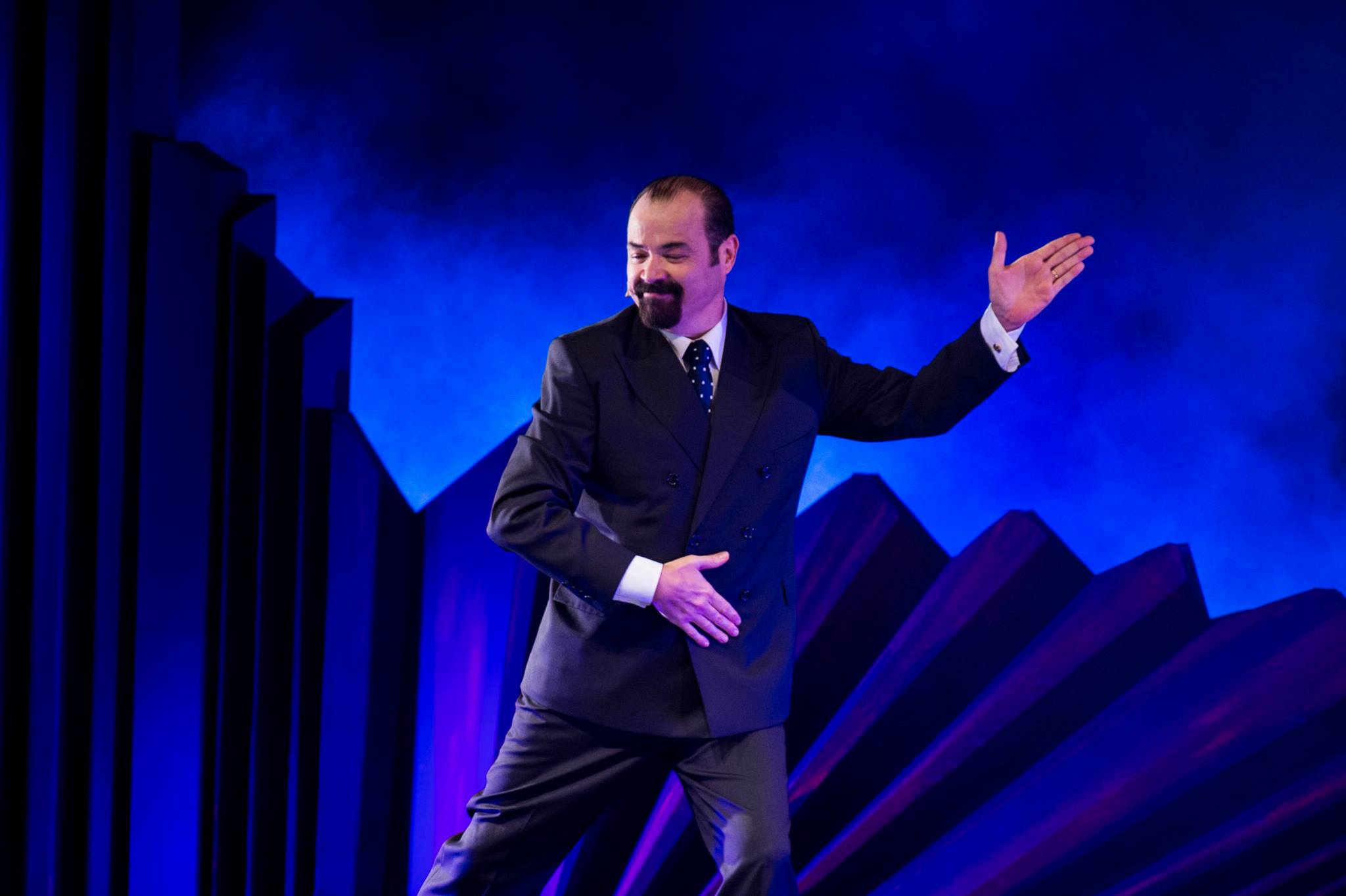 Se apagan las luces y un foco azul, de luz de luna, revela la silueta de Jorge Suárez encarnando a Manzi. El clima, la expectación del público, el bandoneón que se escucha bajito, completan la ilusión. Es el propio Homero, consciente de ser un mito, el que llega al borde del escenario, nos sonríe, se acerca a nosotros y comienza a recordar pasajes de su existencia.